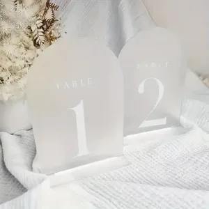 Матовий номер столу з акрилу (18×13 см) — це сучасний декоративний елемент, який створює ефект легкості та “повітряності” у композиції.